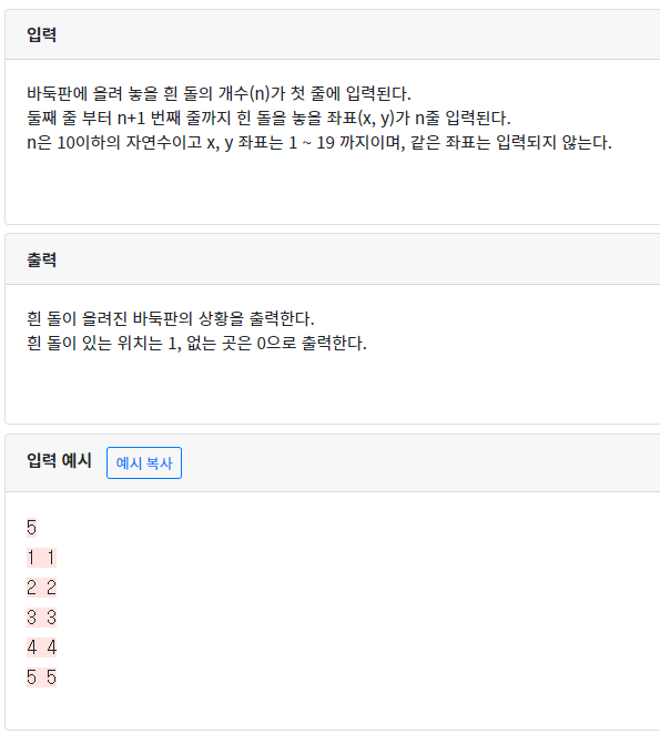[CodeUp]기초100제(python)_1096번 : [2차원배열] 바둑판에 흰 돌 놓기 본문
