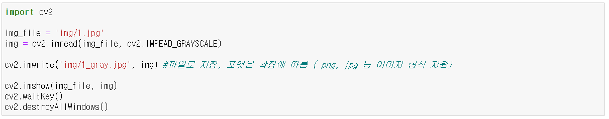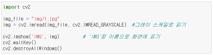 - cv2.IMREAD_GRAYSCALE : 그레이(흑백) 스케일로 읽기