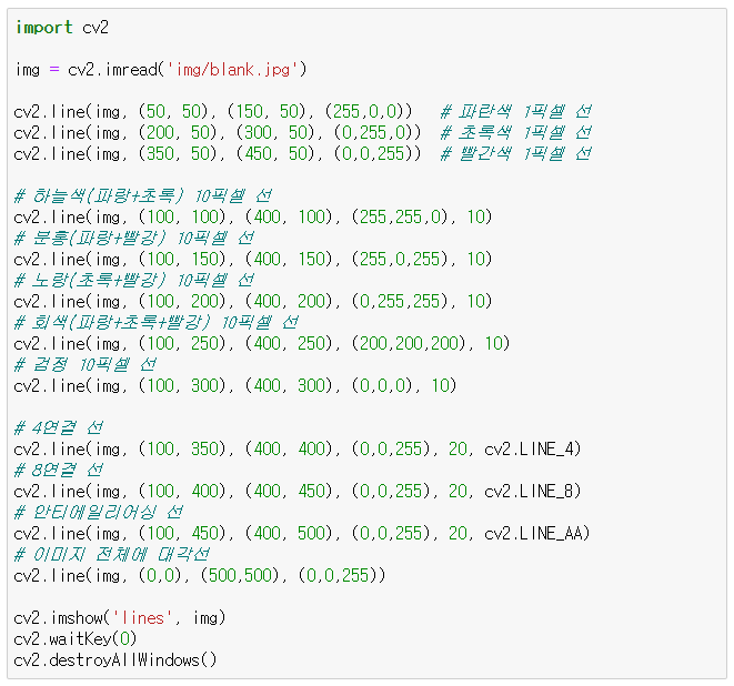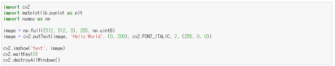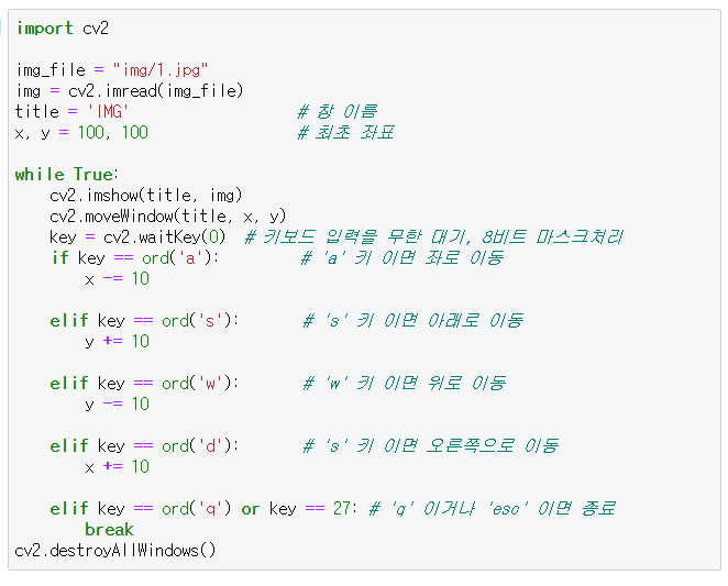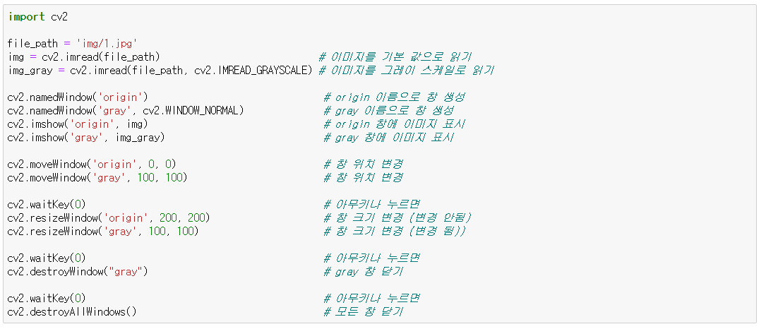 - cv2.WINDOW_AUTOSIZE : 이미지와 같은 크기, 창 크기 재조정 불가능