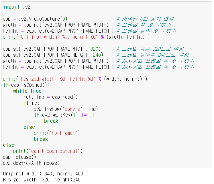 - cap.release() : 객체 자원 반납
