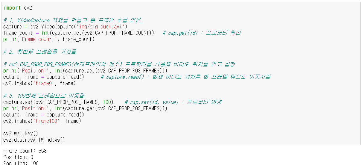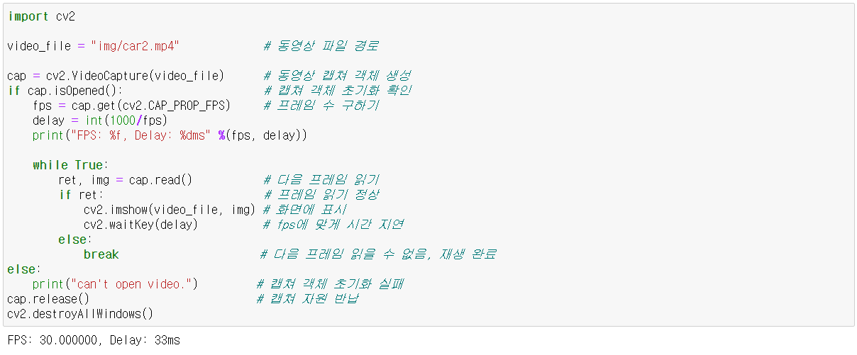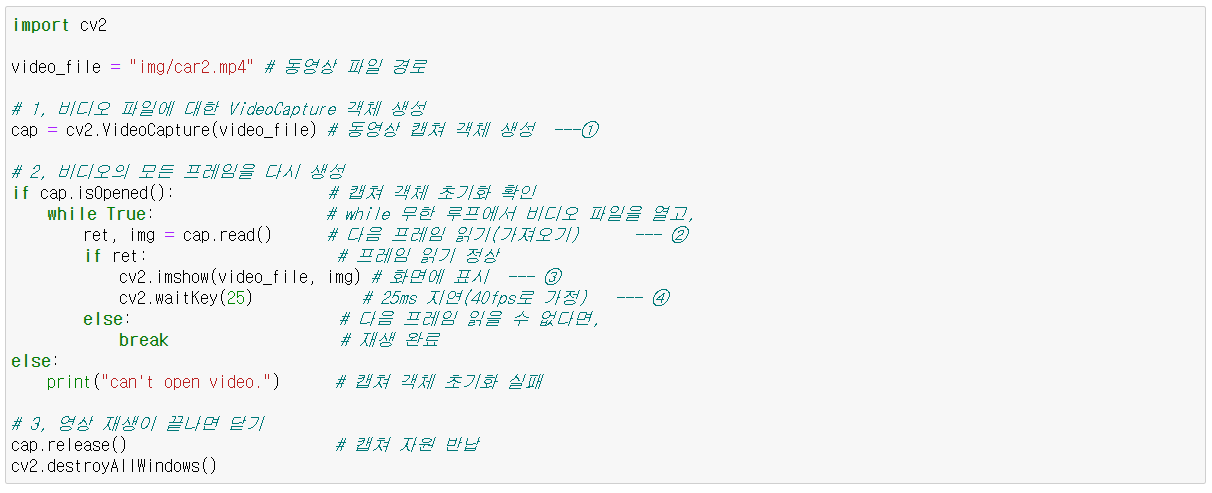 - 1, 비디오 파일에 대한 VideoCapture 객체 생성