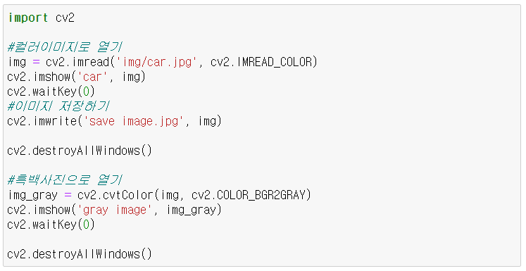 - cv2.IMREAD_UNCHANGED : 파일 그대로 읽기
