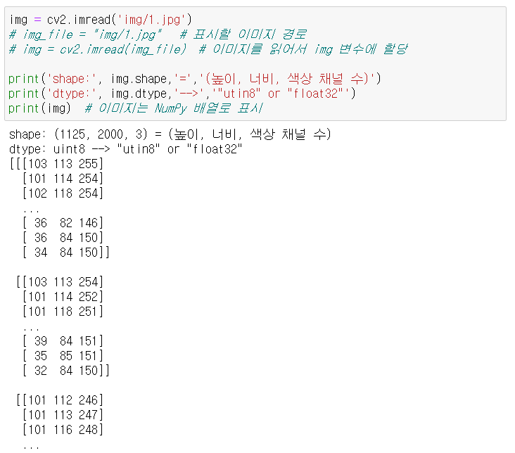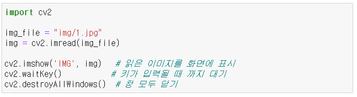 - cv2.IMREAD_COLOR : 컬러(BGR)스케일로 읽기, 기본 값