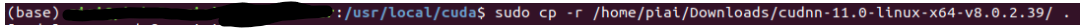 sudo cp -r /home/piai/Downloads/cuDNN 폴더명/ .