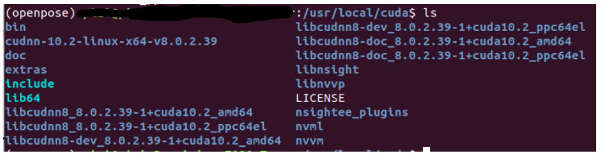 확인해보면 4개 폴더 모두 /usr/local/cuda/에 들어가있는 것을 확인 해 볼 수 있다.