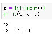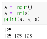 int형 정수 1개를 입력받아 공백을 사이에 두고 3번 출력해보자.