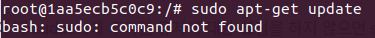 sudo가 설치가 안 되어있기 때문에 다음과 같은 오류가 뜬다.