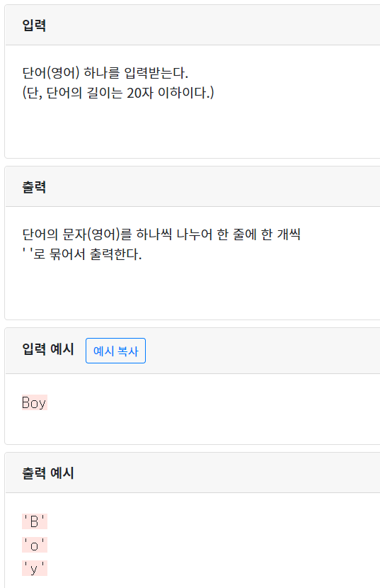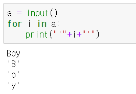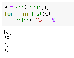 [CodeUp]기초100제(python)_1024번 : [입출력] 단어 1개 입력받아 나누어 출력하기 본문