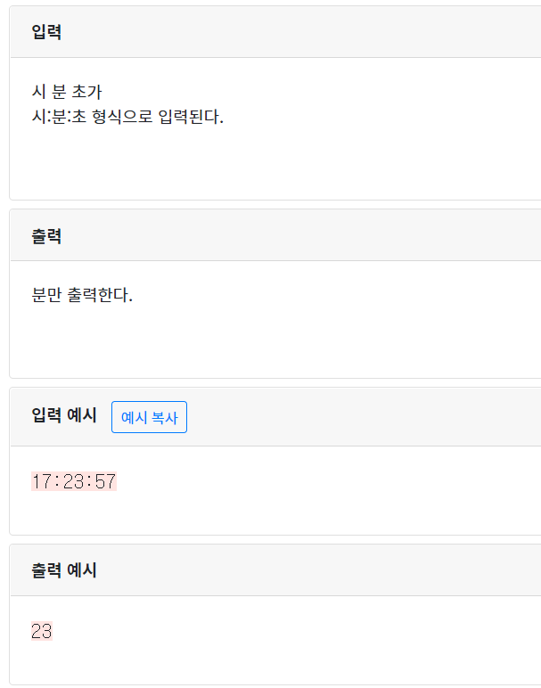 입력되는 시:분:초 에서 분만 출력해보자.