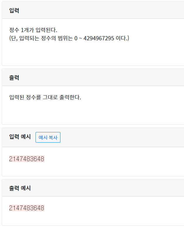 (단, 입력되는 정수의 범위는 0 ~ 4,294,967,295 이다.)