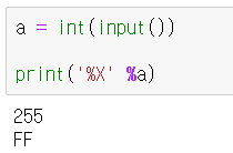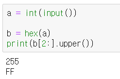 [CodeUp]기초100제(python)_1033번 : [출력변환] 10진 정수 입력받아 16진수로 출력하기2 본문