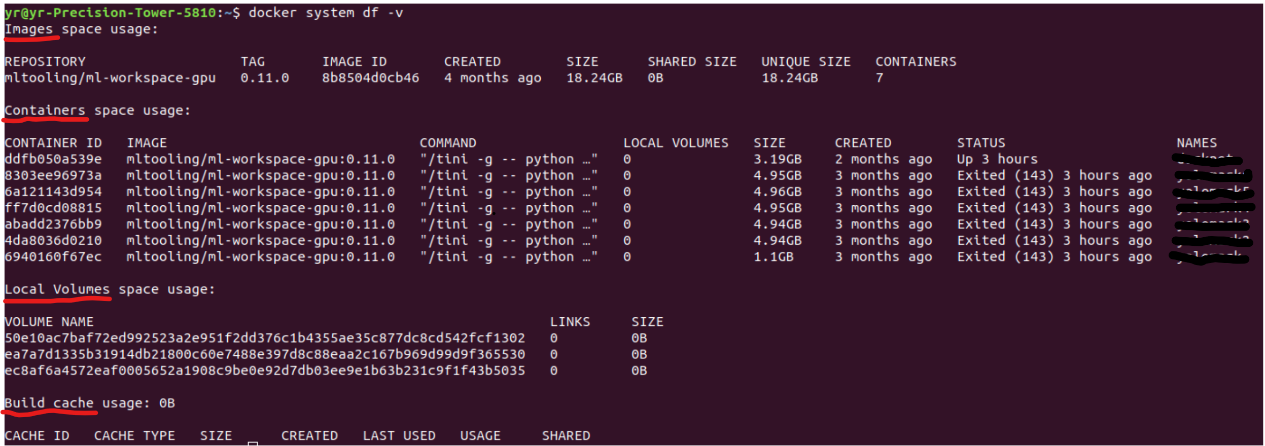 $ docker system df -v