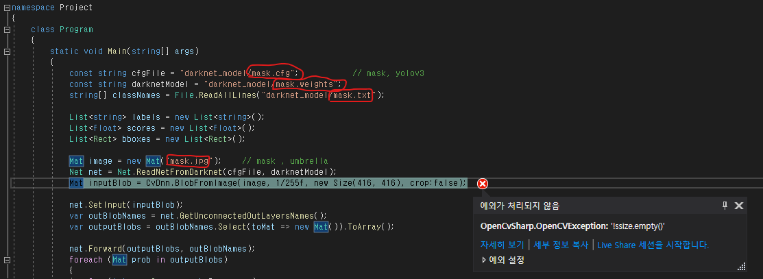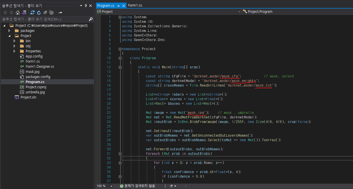 Project/bin/Debug 폴더에 "darknet_model" 폴더 넣기