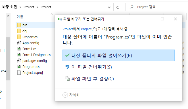 Program.cs 파일 복사해서 Project 폴더에 덮어쓰기