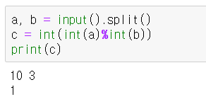 [CodeUp]기초100제(python)_1043번 : [산술연산] 정수 2개 입력받아 나눈 나머지 출력하기 본문