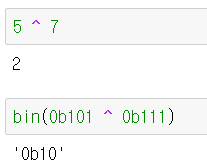 | XOR | ^ | 같으면 0, 다르면 1 |