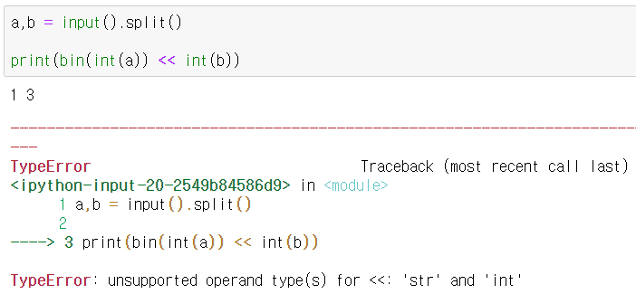 [오류] a를 2진수로 바꿔서 << 계산을 해야 하는 줄 알고 다음과 같은 오류가 났었다.