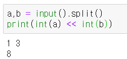 예를 들어 1 3 이 입력되면 1을 2^3(8)배 하여 출력한다.