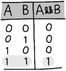 논리연산자 && 는 주어진 2개의 논리값이 모두 참(1) 일 때에만 1(참)로 계산하고,