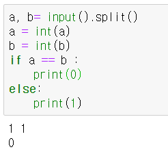 | [CodeUp]기초100제(python)_1057번 : [논리연산] 참/거짓이 서로 같을 때에만 참 출력하기 (0) | 2020.03.15 |