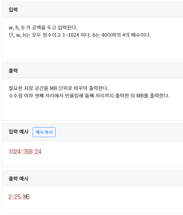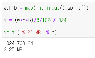 [CodeUp]기초100제(python)_1086번 : [종합] 그림 파일 저장용량 계산하기 본문